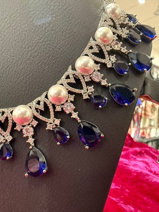 Royal Blue Pearl Statement Necklace Set