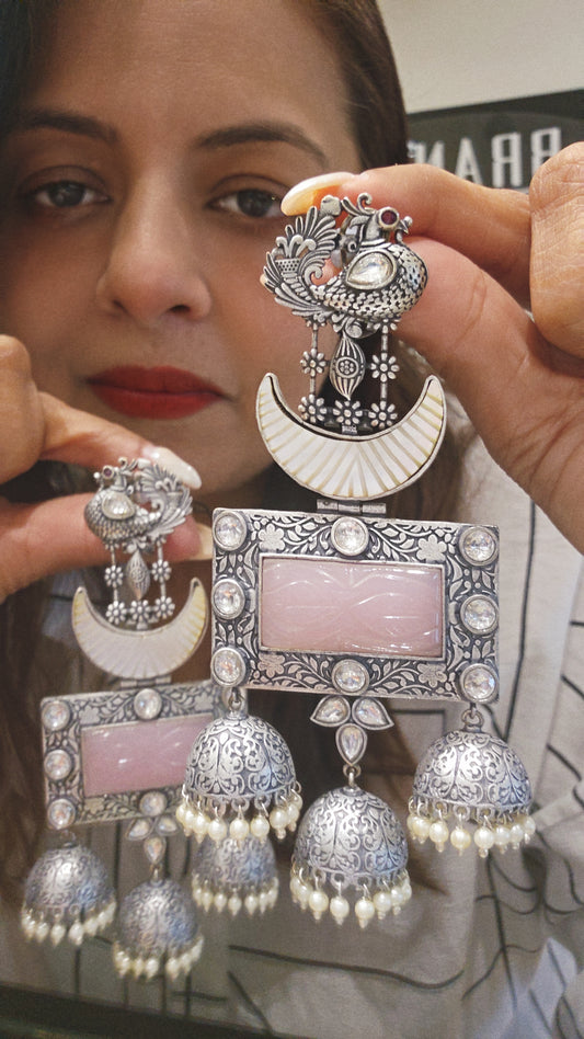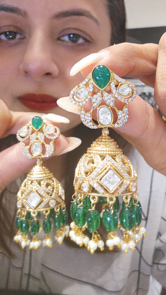 Silver gold Stone Allured with Silver Craft, and Green Red Stone Earrings