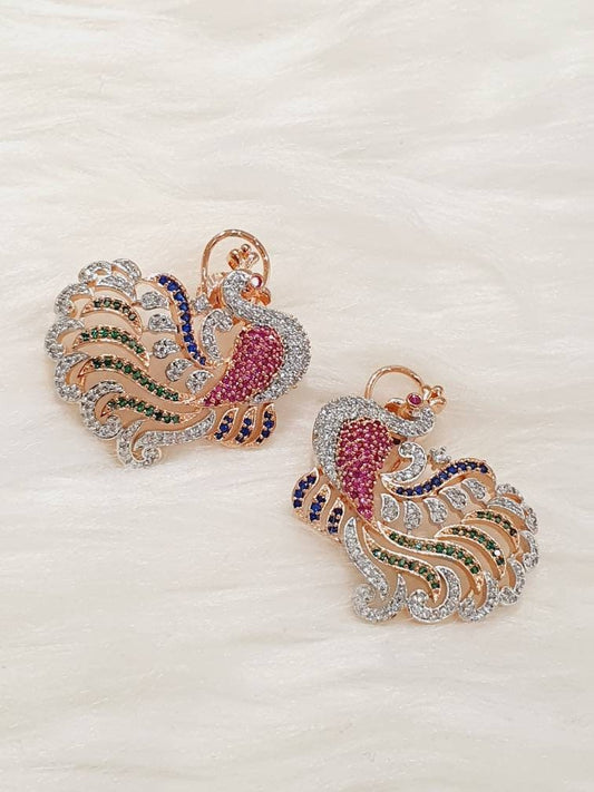 Semi Precious Gold Plated Sparrow Ruby Eyes Stone Earrings Pakistani Designer