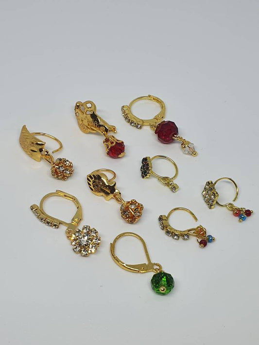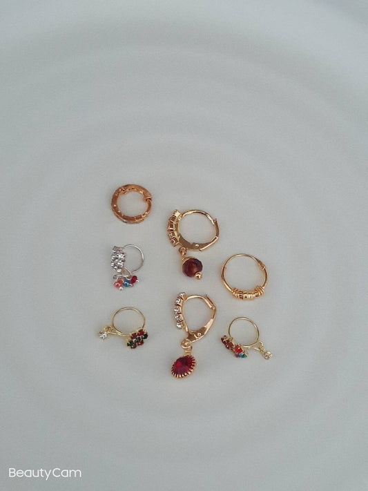 9 pieces Nose Ring and Earrings Dangle Nose Piercing Cubic Zirconia Stone Gold Plated Indian Jewelry dangling