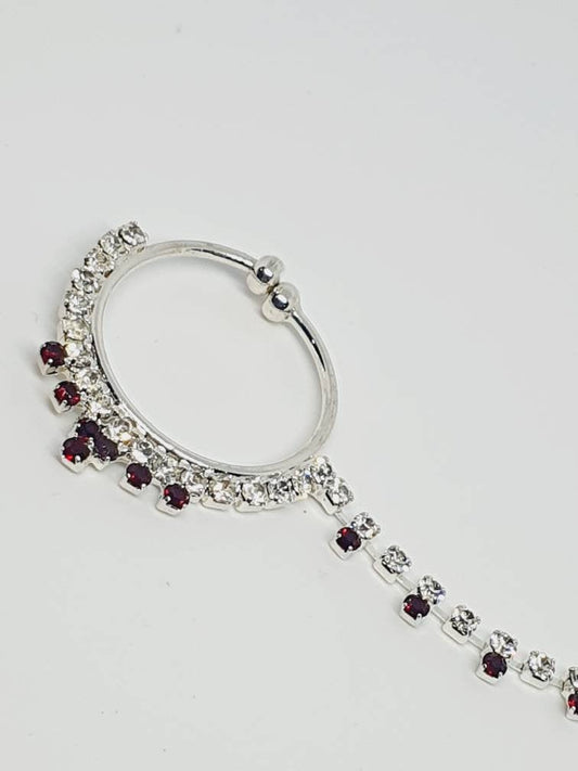 Silver with Red Stone Non Pierced Nose Hoop Bell Nose Ring