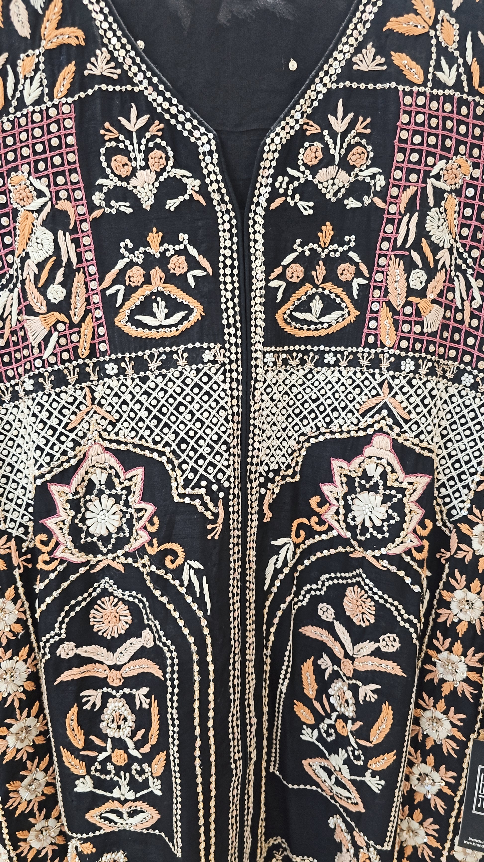 Elevate your wardrobe with this Teal Blue Silk outfit, expertly crafted from luxurious silk fabric that offers a smooth, elegant drape. The intricate hand embellishment adds a refined artisanal touch, enhancing its unique charm. Perfect for occasions demanding both style and sophistication, this ready-to-wear piece combines comfort with exquisite detailing for a standout look.