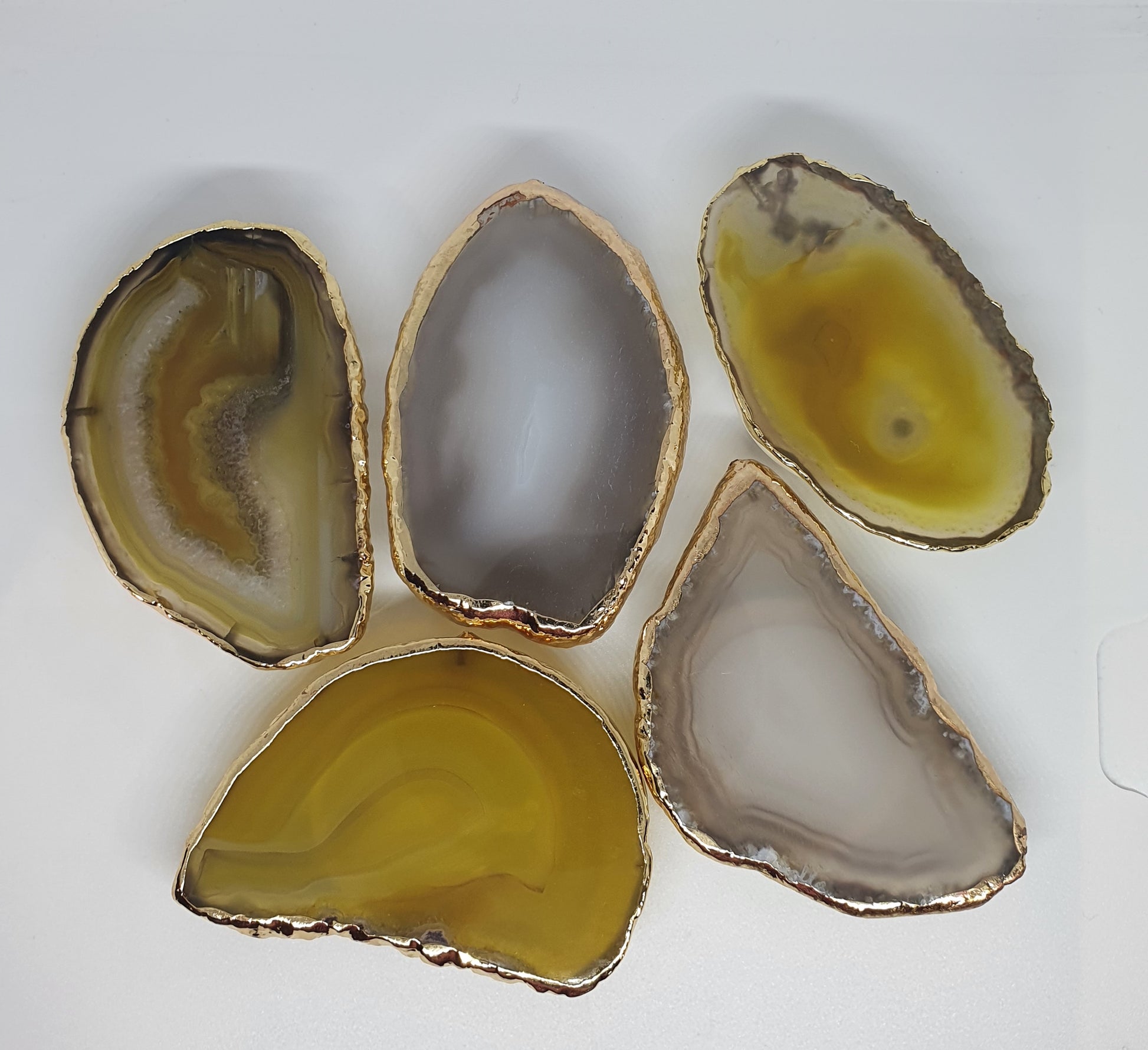 Gift for her | Gray Agate Natural edge | Yellow Black | Irregular with Gold Rim | Tiger Eye | Natural Gemstone Crystal | Phone Accessory