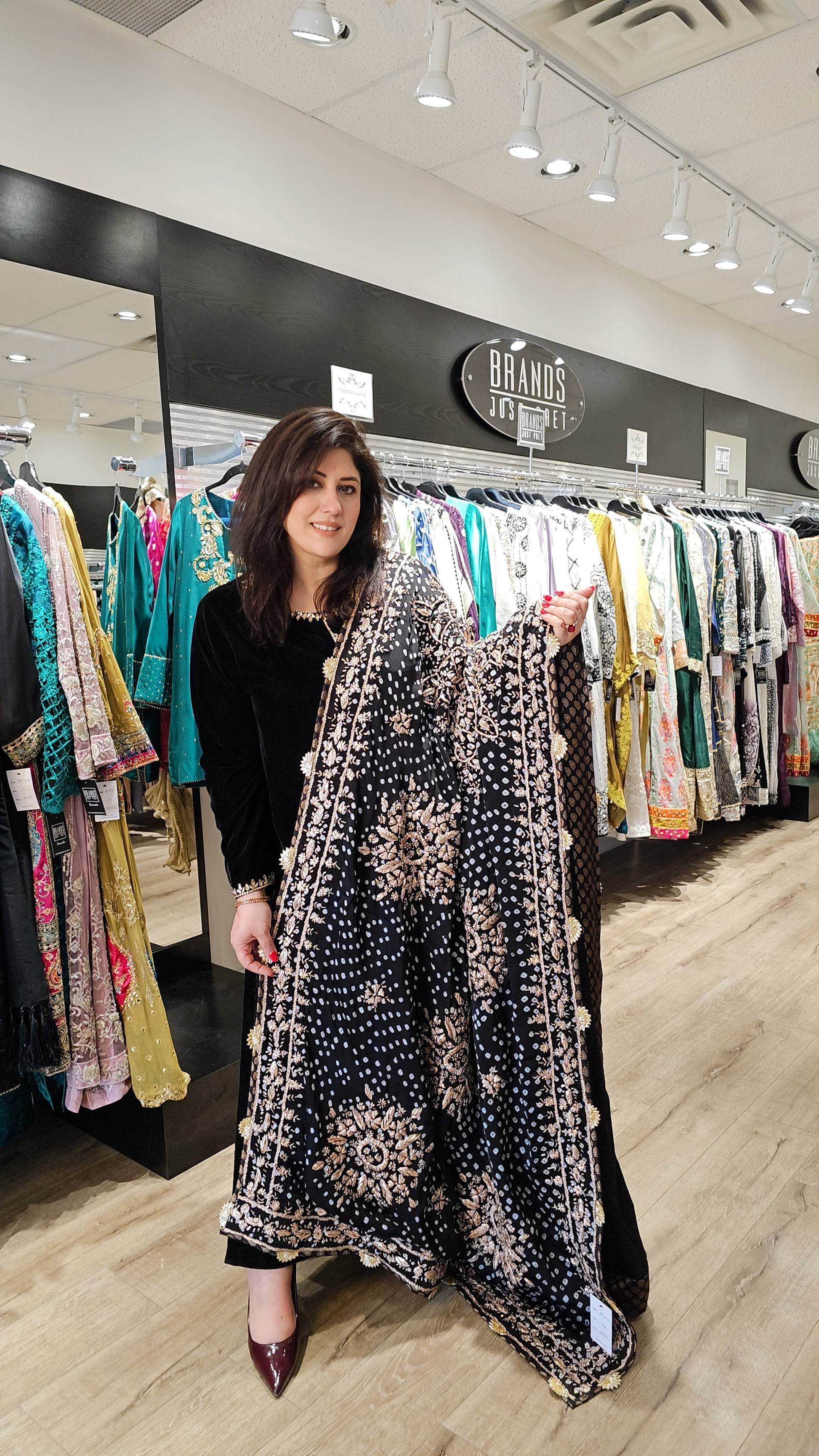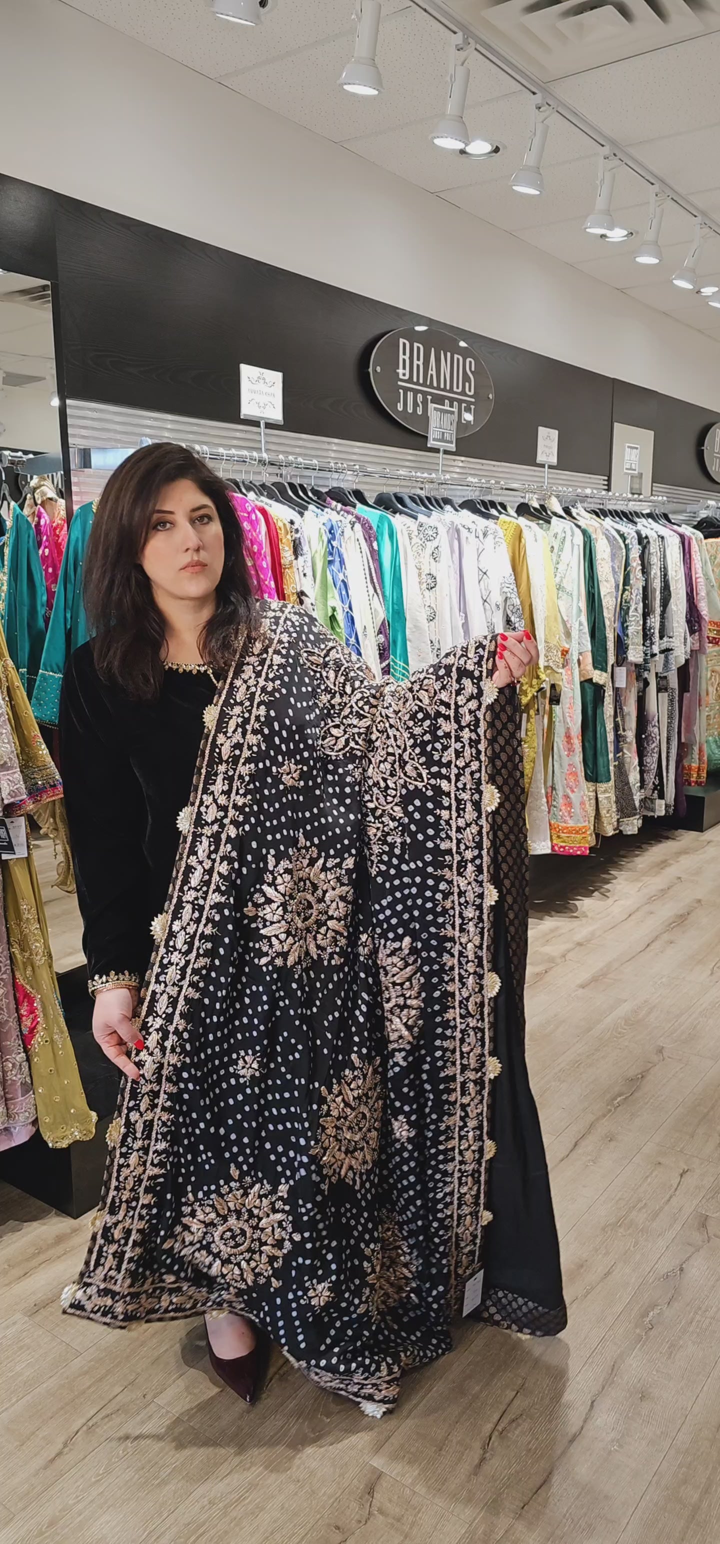 This dupatta is absolutely stunning; the black, white and gold combination is a total win. The gota work gives it such a beautiful texture, making it feel extra special. The banarasil silk finishing adds a rich pop of color and luxury. I can already imagine how elegant this would look with a simple outfit.