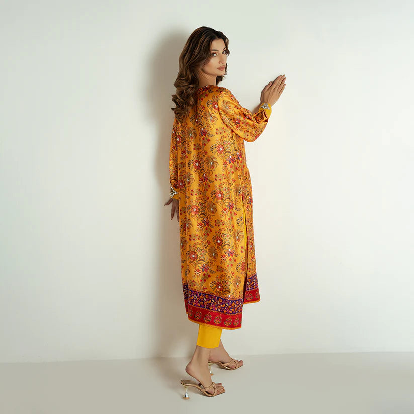 The exquisite satin silk long shirt with hand embroidery and pants would be a lovely addition to any wardrobe. Its elegant design and luxurious fabric promise both comfort and style. The delicate hand embroidery adds a unique touch, making it truly special. Paired with matching pants, it presents a complete and fashionable ensemble. Overall, it is a timeless choice perfect for various occasions.