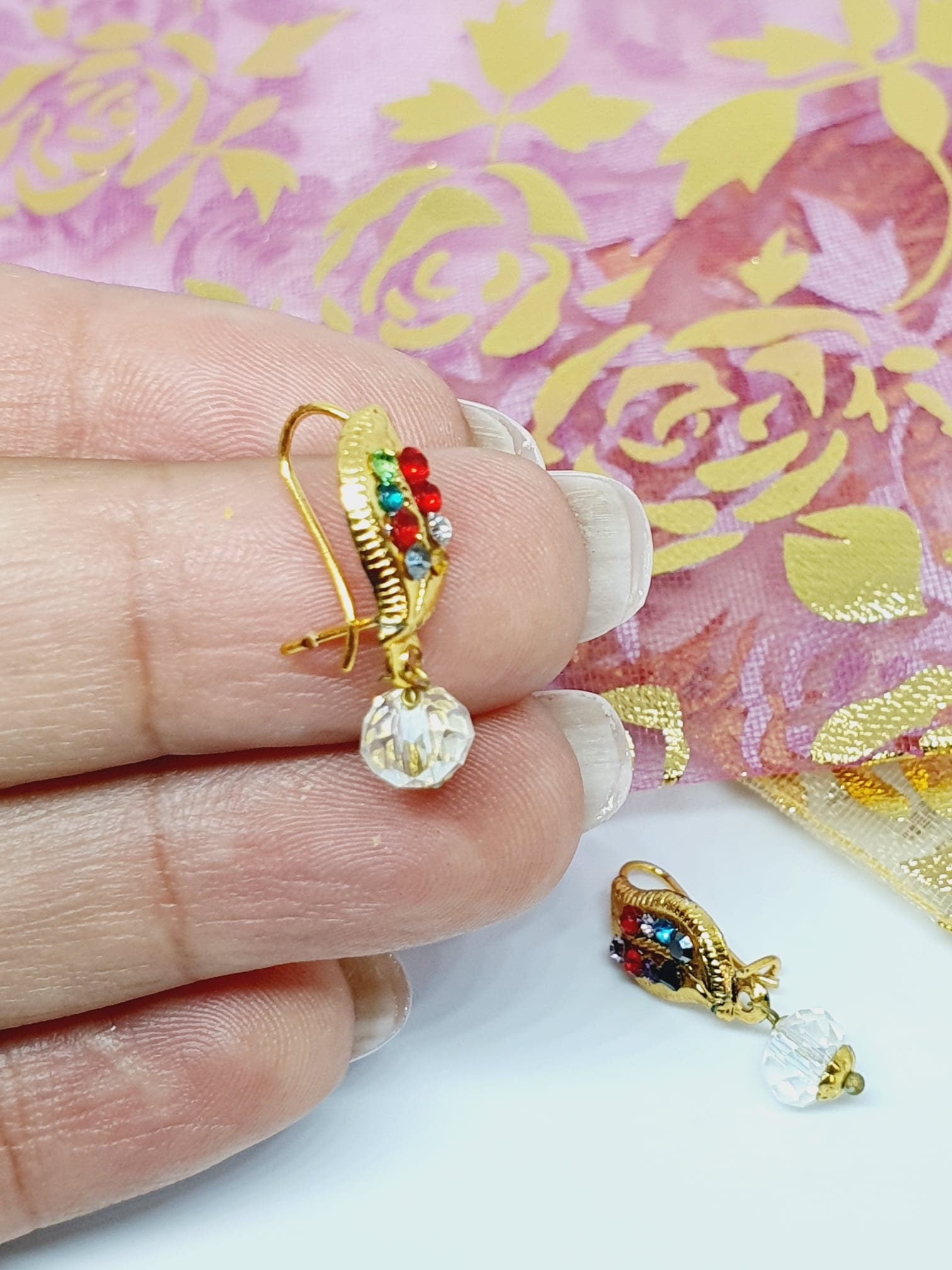 2 Pieces Multi Color Leaf Dangle Stone Gold Bollywood Bridal Indian Jewelry Women Pierced Nose Ring