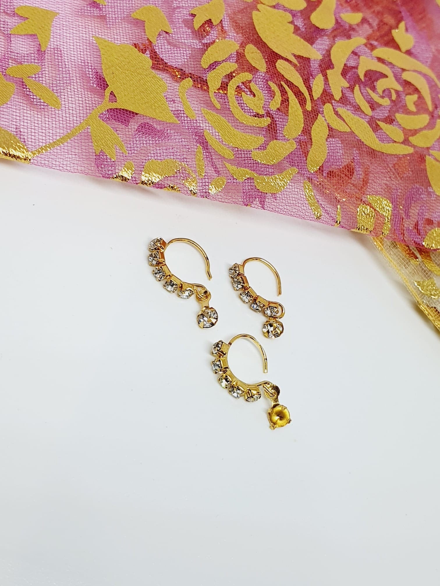 3 Pieces Clear Multi Dangle Stone Nose Ring Gold Bollywood Wedding Indian Jewelry Women Pierced Nose Ring