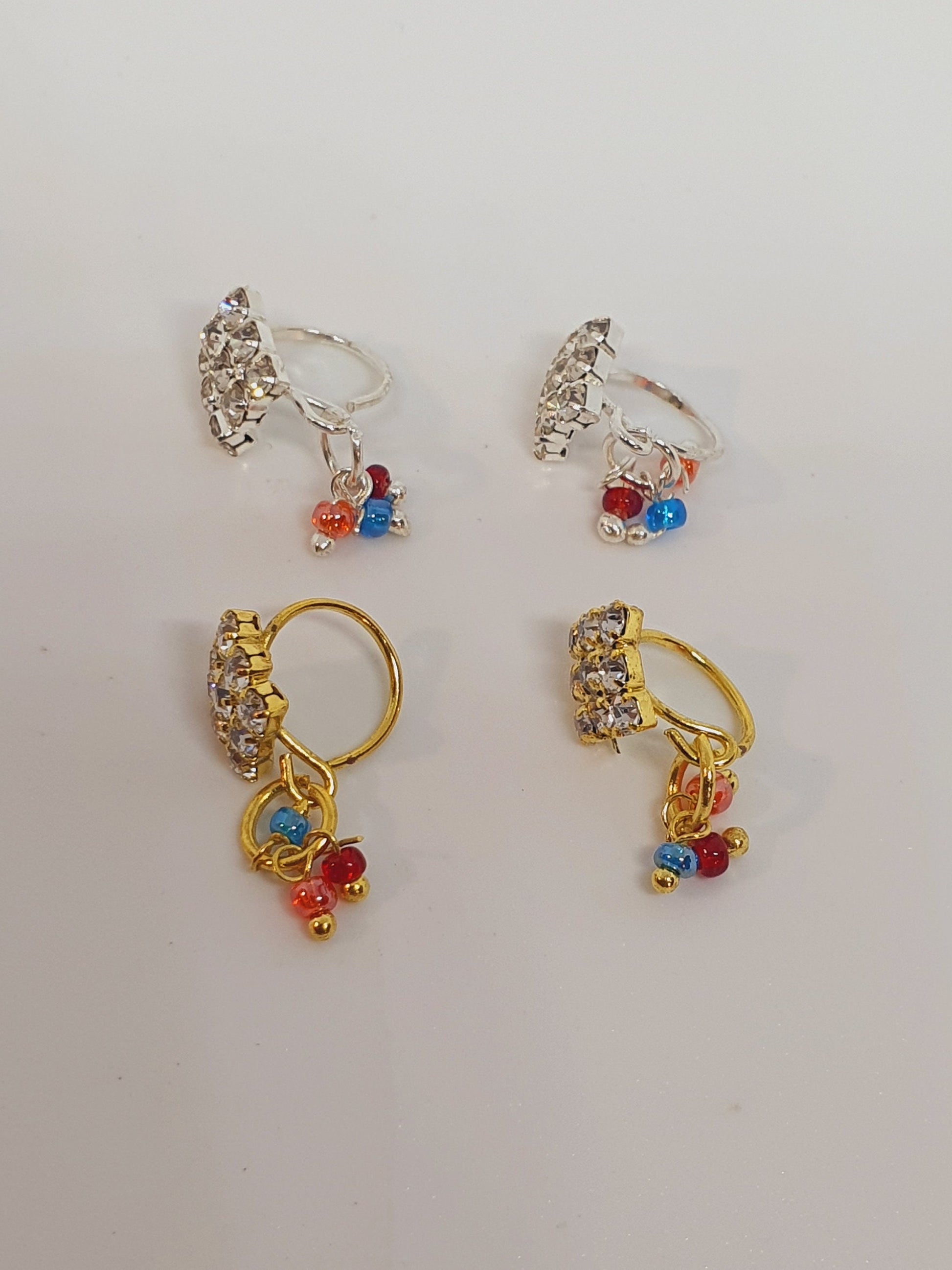 4 Pieces Clear Multi Dangle Stone Nose Ring Gold Silver Bollywood Wedding Indian Jewelry Women Pierced Nose Ring