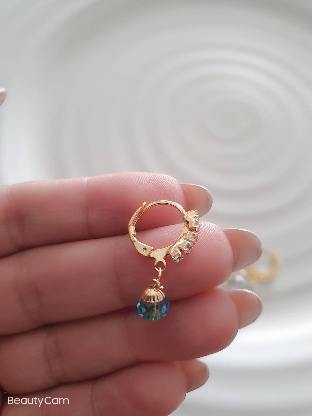 Blue Beads Nose Ring, Gold Filled Nose Hoop, Daith Earring, Tragus Hoop, Cartilage Ring, Cute Nose Ring, Unique Nose Hoop