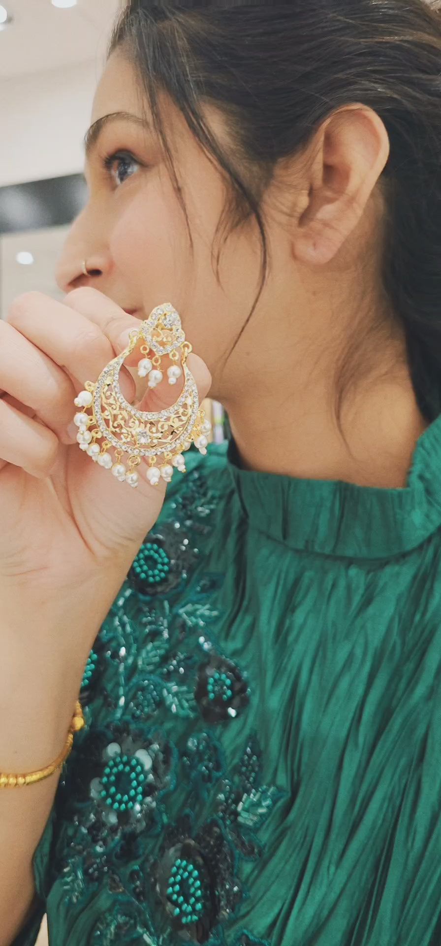 Gold plated chaandbaalis featuring an impressive ethnic design that accentuated with faux pearls to elevate your look.