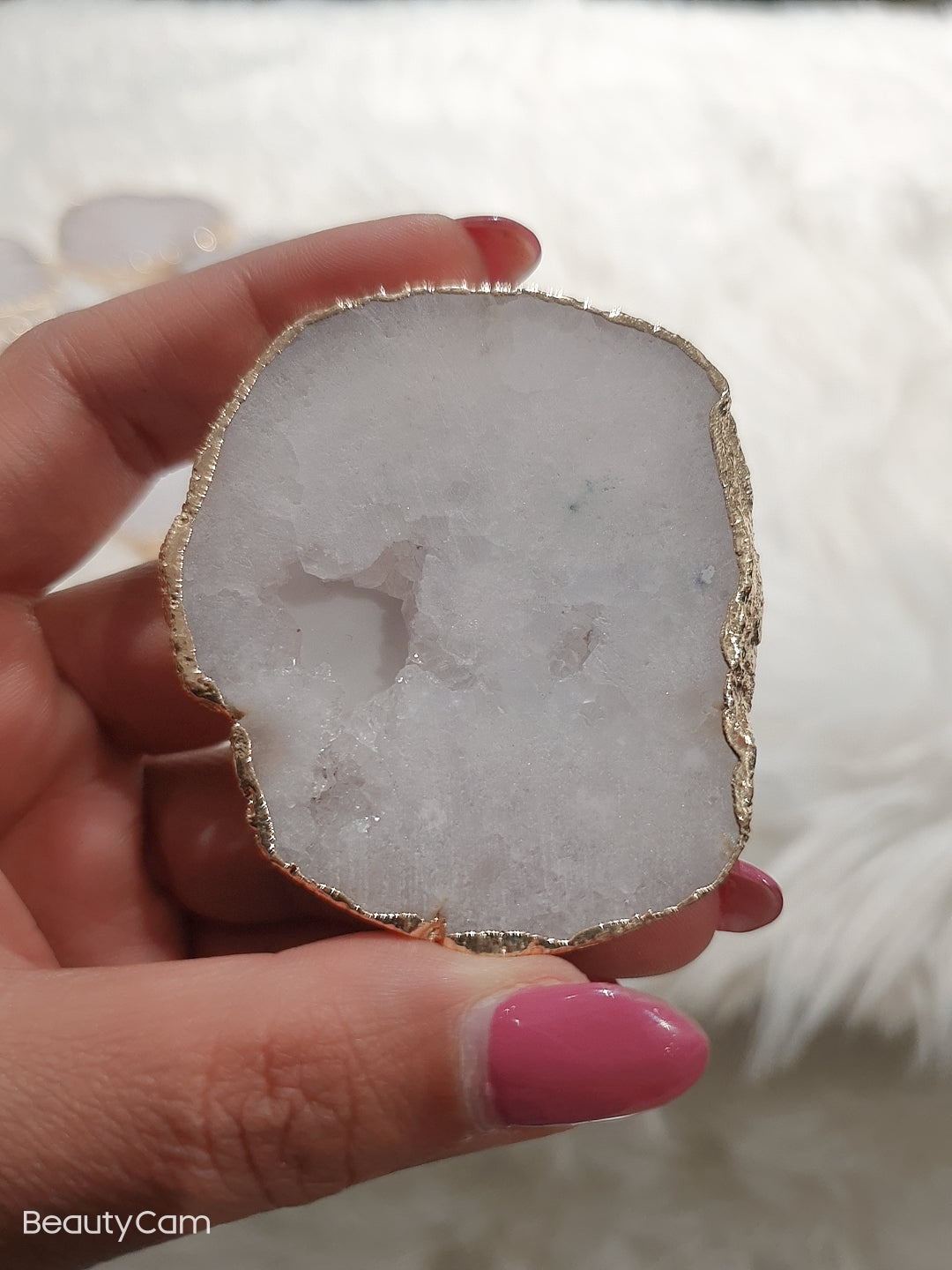 These natural agate comes with deep cut/holes, natural cracks where sometimes the base of the cap can be seen as well. If you want without any holes or cracks you can go to our other druzy agate listing which offers without any kind of discrepancies.
