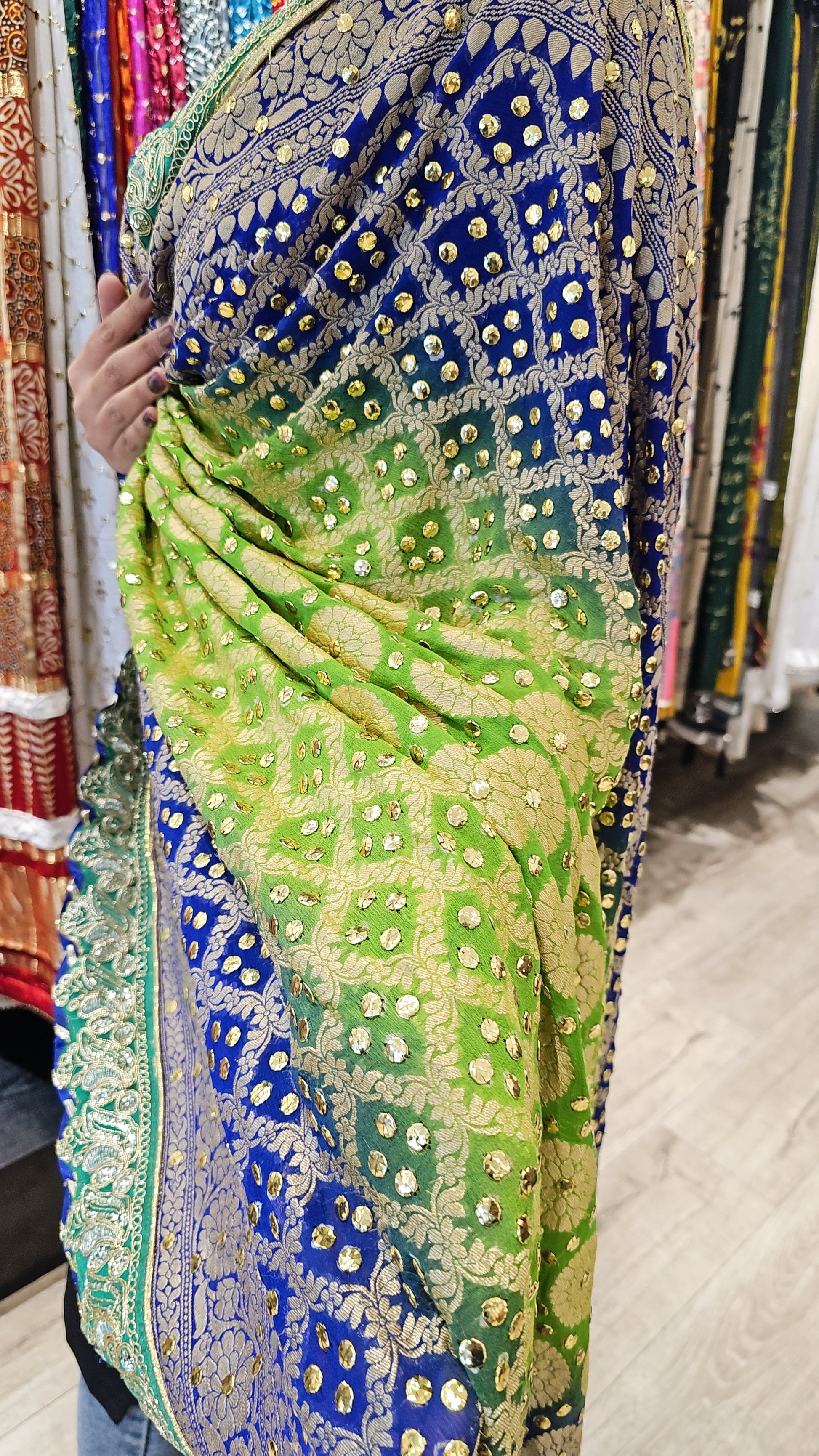 Yellow Cikenkari 2 pcs outfit with gold handworkThe beautiful ensemble features two pieces of yellow fabric, designed with intricate detail. Delicate gold handwork embellishes the garment, creating a stunning visual effect. Its intricate patterns and craftsmanship showcase a blend of tradition and artistry. This outfit is perfect for any special occasion, offering both elegance and sophistication. The vibrant yellow color and shimmering gold accents make it truly eye-catching.