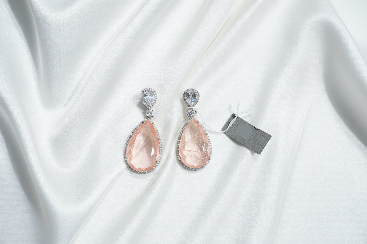 Elevate your style with these stunning pear-shaped morganite and diamond drop earrings.Crafted in warm 14K rose gold, their delicate peachy-pink hue adds a touch of romance and sophistication to any occasion. The surrounding diamond halo provides brilliant sparkle and timeless elegance.