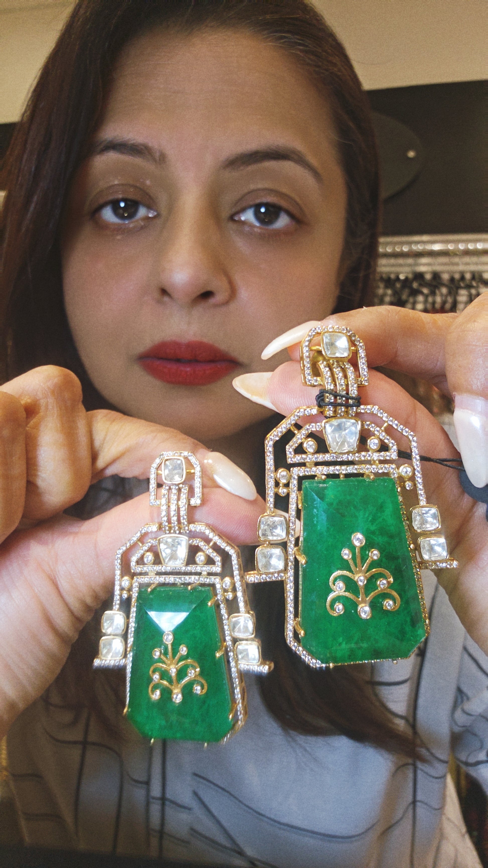 This exquisite Green Artistic Earring features intricate detailing enhanced by an antique gold finish, creating a timeless piece that blends traditional charm with modern artistry. Its jhumka silhouette offers a graceful drape, ideal for complementing both formal and casual ensembles while adding a distinctive touch of elegance. Perfectly crafted for durability and style, this earring elevates your accessory collection with subtle sophistication and cultural richness.