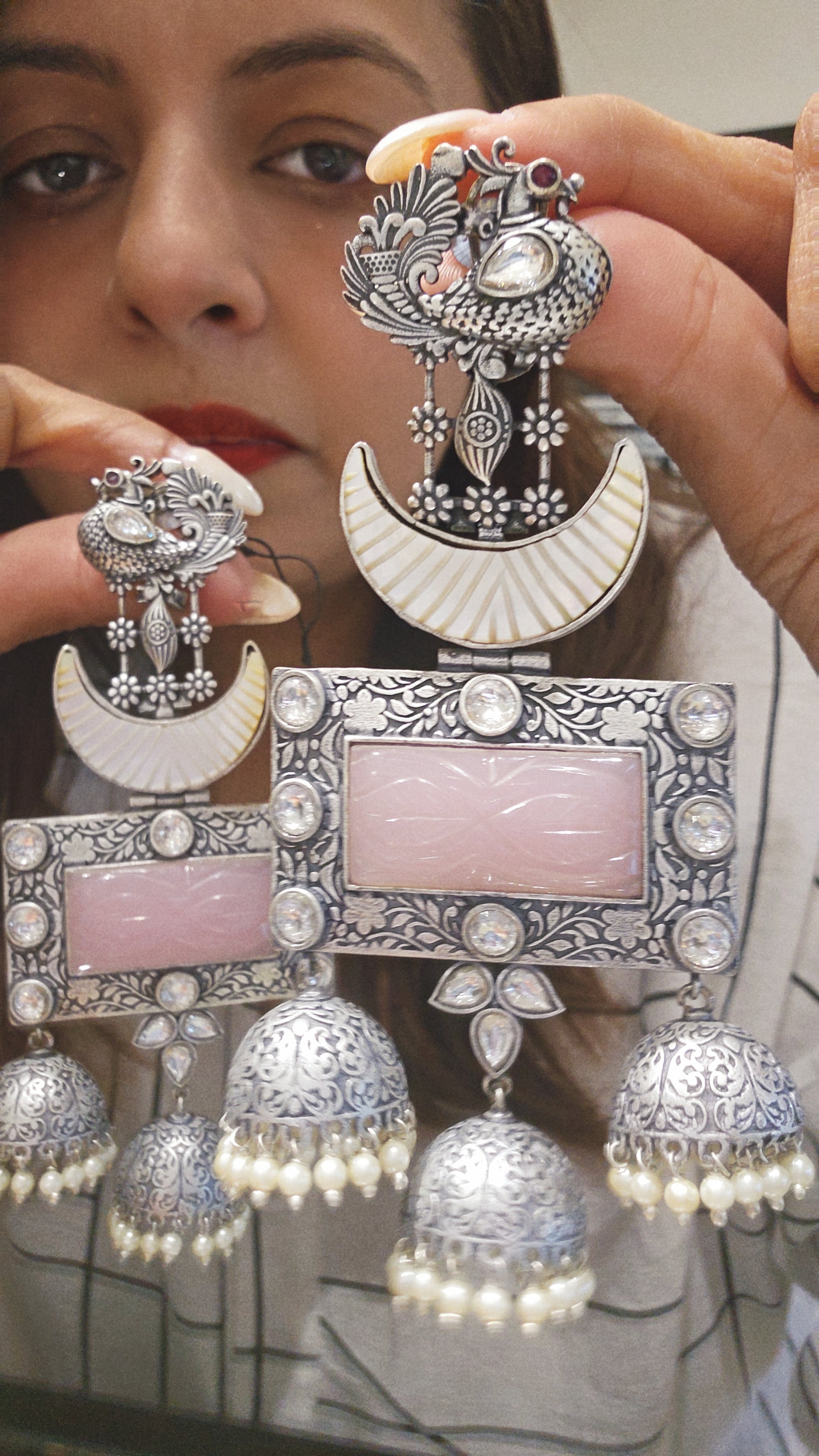 Elevate your traditional jewelry collection with these Silver Pearl Long 3 Jhumka Earrings. Expertly crafted with lustrous silver and delicate pearl accents, they offer timeless elegance and refined craftsmanship. Their elongated design enhances movement and grace, perfect for complementing both festive and formal attire with subtle sophistication.