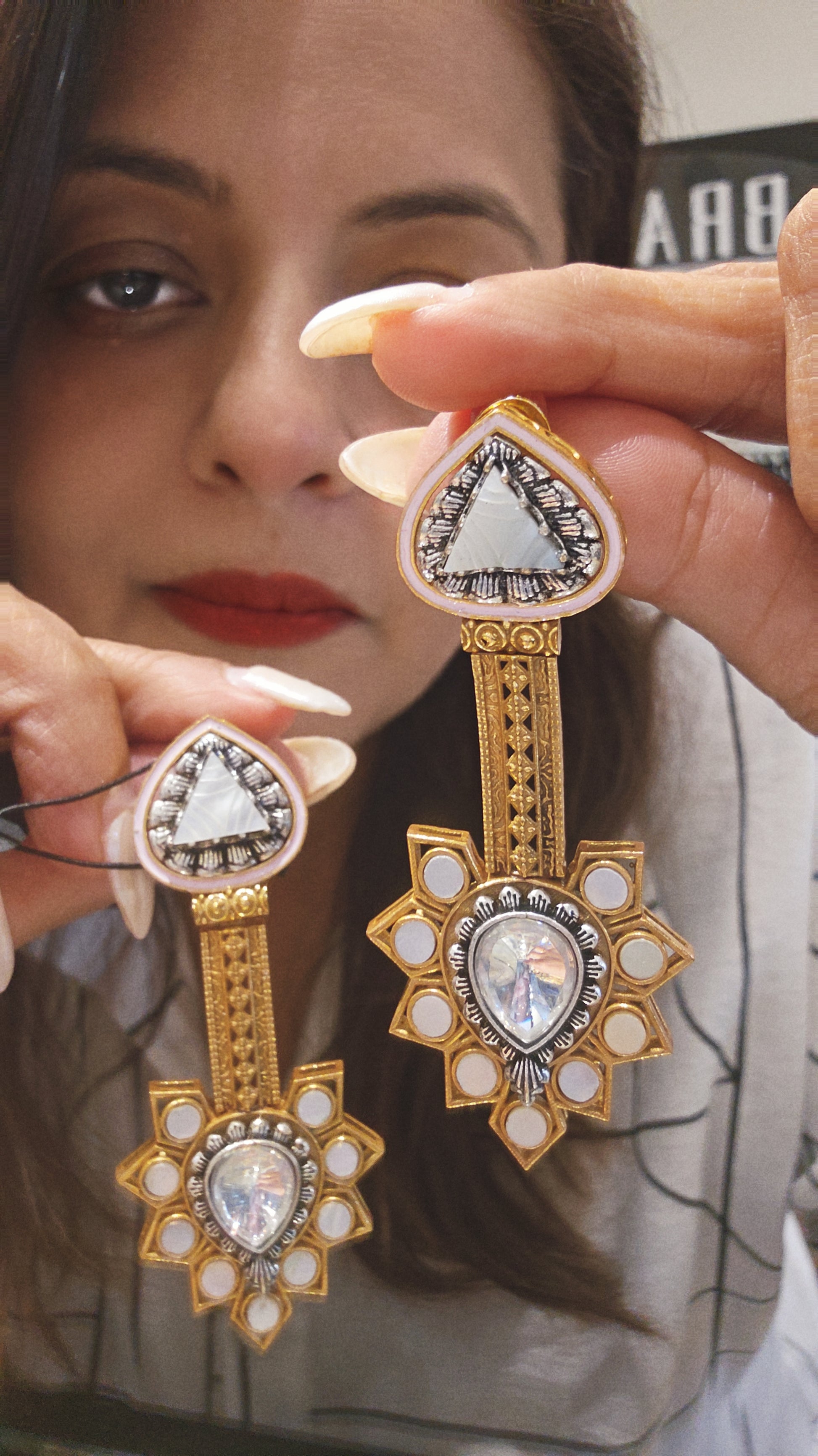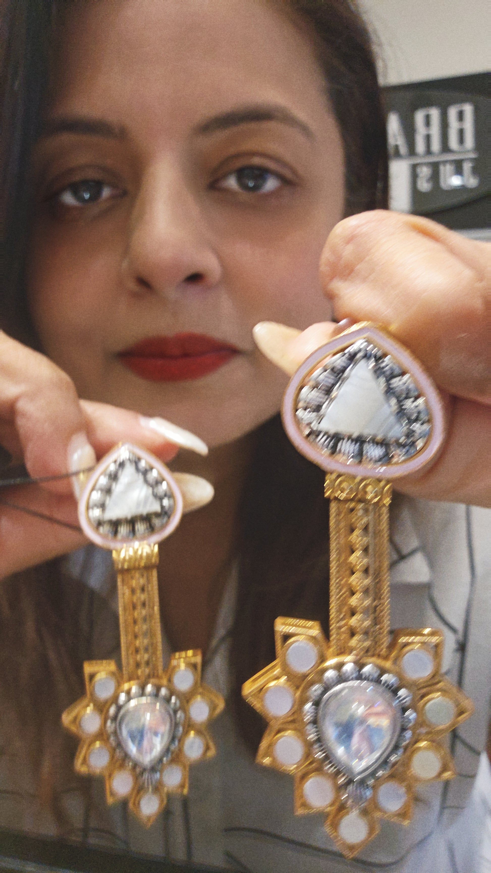 These elegant gold Indian long earrings showcase intricate kundan work paired with a striking light pink stone, offering a refined and traditional aesthetic. Their detailed craftsmanship makes them perfect for enhancing formal or festive attire with a touch of cultural sophistication. Ideal for those who appreciate classic Indian jewelry artistry combined with bold, vibrant accents.