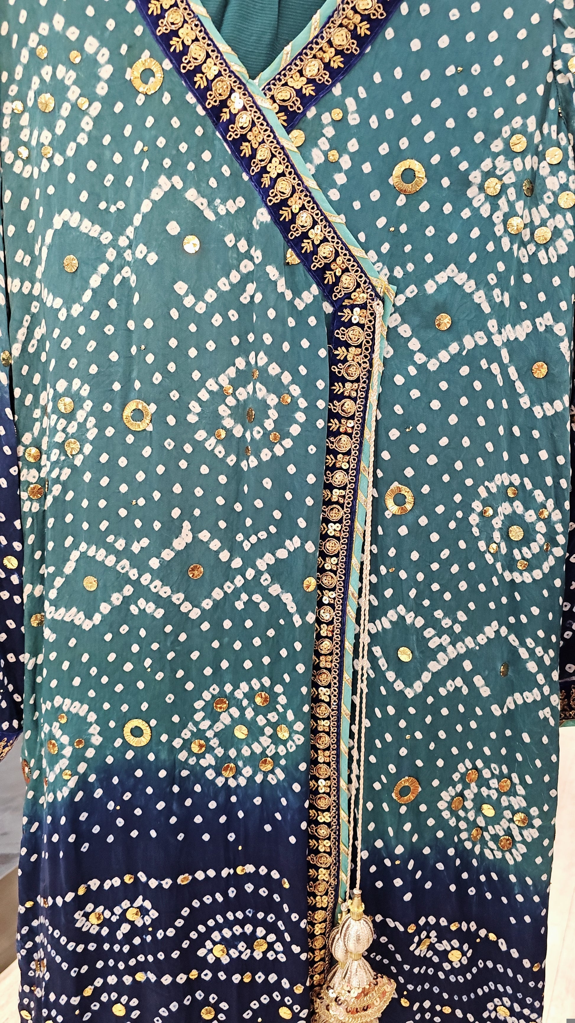 Navy & Teal Bandhani Elegance – 3 Piece Suit Set