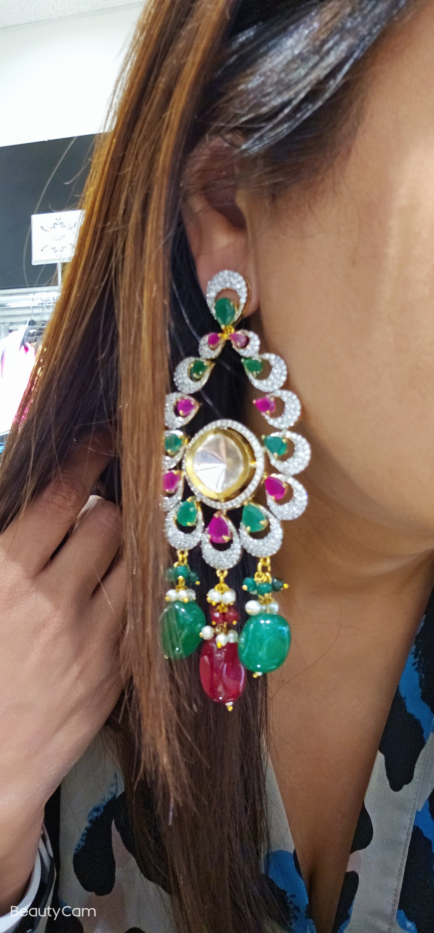Silver gold Stone Allured with Silver Craft, and Green Red Stone Earrings