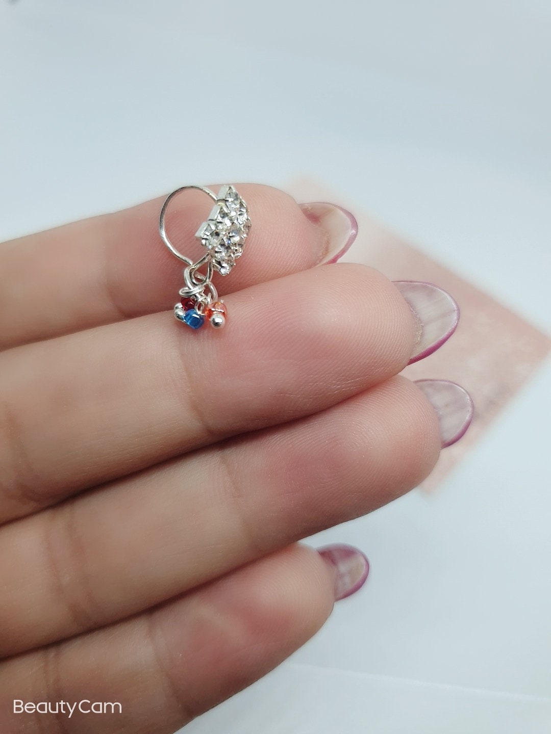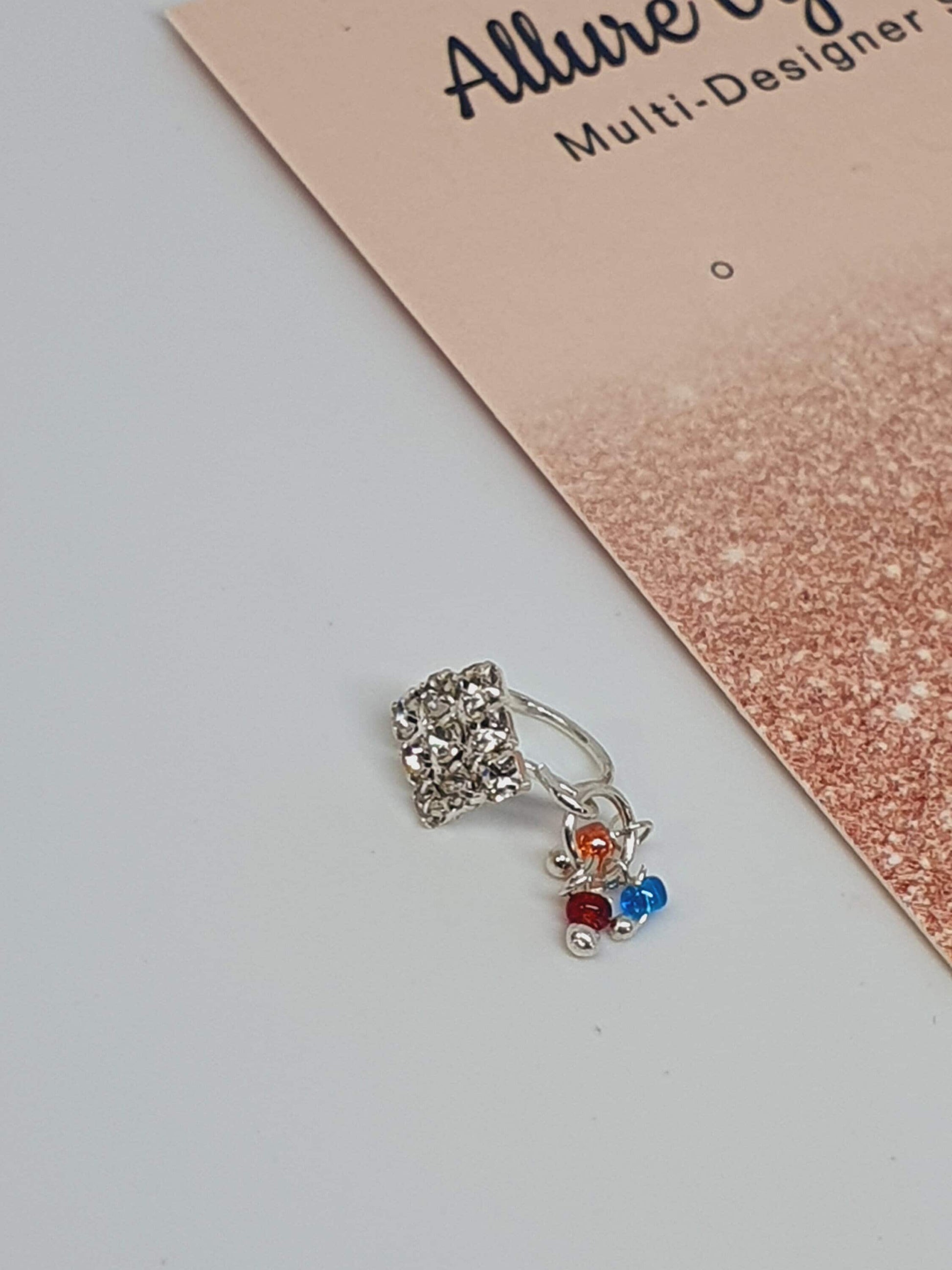 Silver Nose Ring | Multi-color Dangle Stone Nose Ring Gold Bollywood Wedding Indian Jewelry Women Pierced Nose Ring