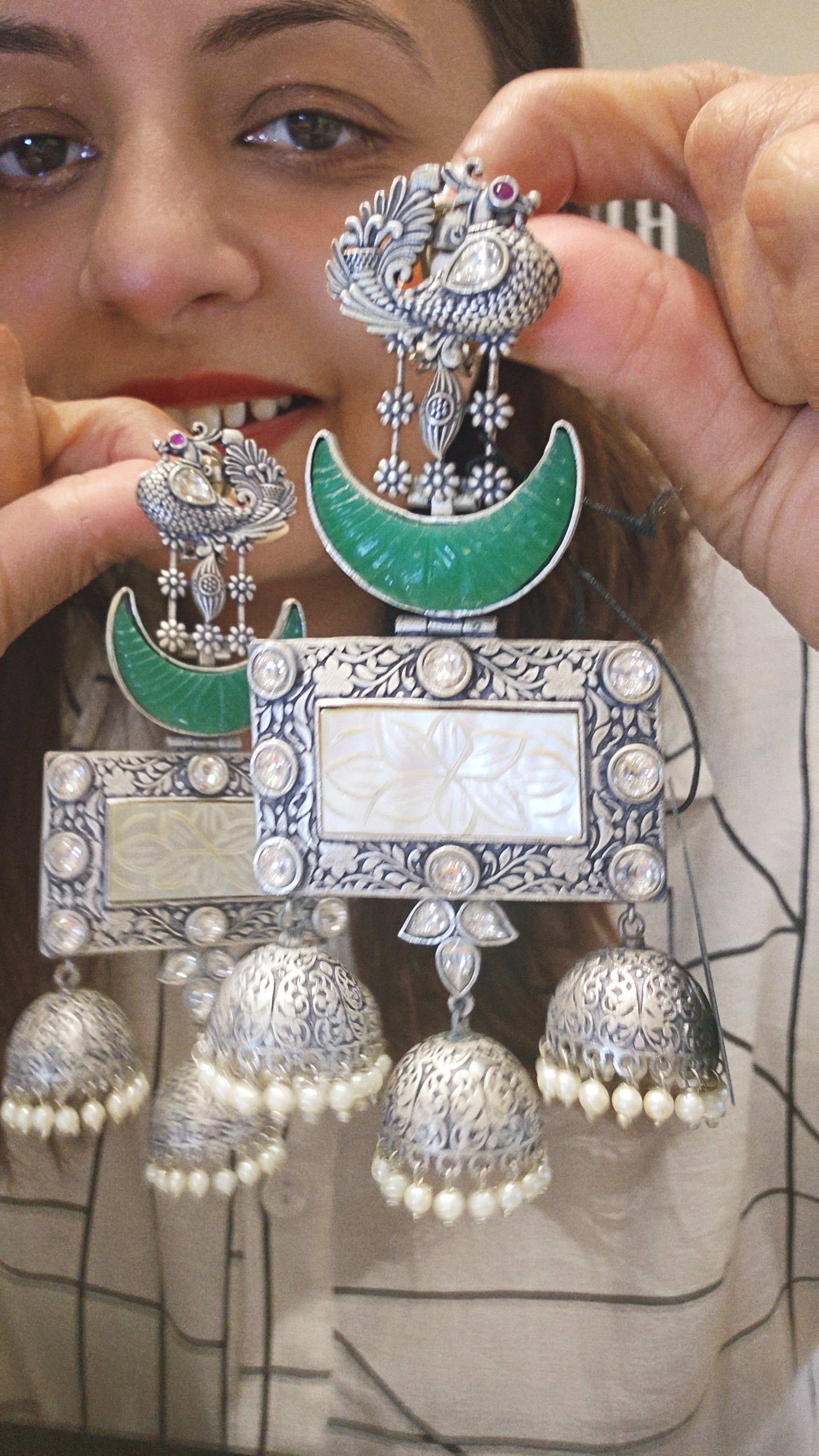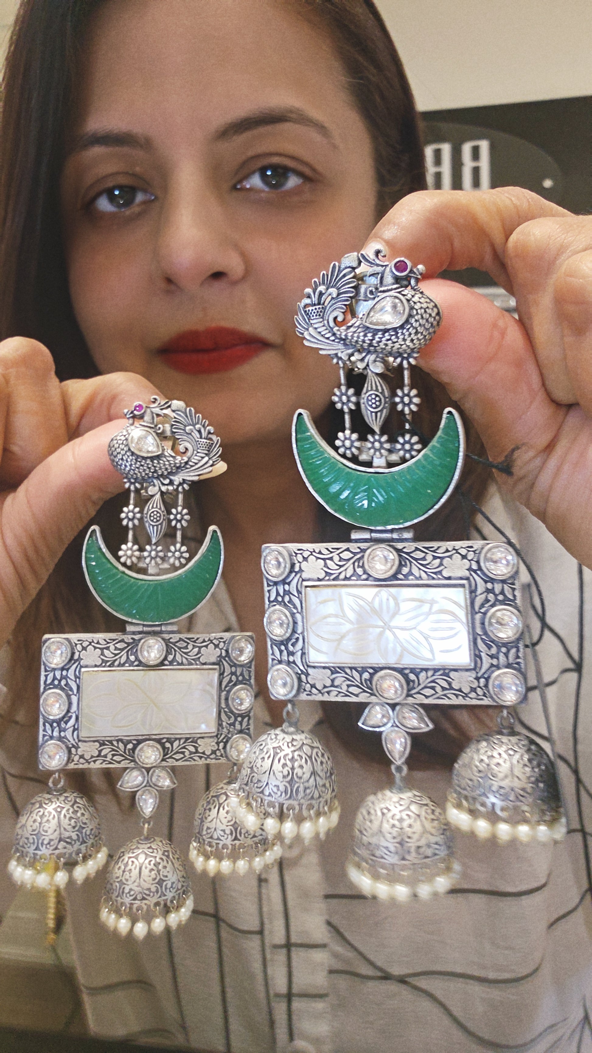 Elevate your traditional jewelry collection with these Silver Pearl Long 3 Jhumka Earrings. Expertly crafted with lustrous silver and delicate pearl accents, they offer timeless elegance and refined craftsmanship. Their elongated design enhances movement and grace, perfect for complementing both festive and formal attire with subtle sophistication.