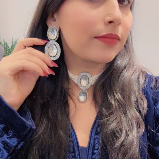 Elevate your elegance with our Joker White Crystal Set, a stunning blend of sophistication and modern charm. This beautifully crafted set features shimmering white crystals arranged in a sleek, timeless design that instantly enhances any outfit. The choker-style necklace rests gracefully on the neckline, offering a perfect balance of subtle sparkle and bold style. Paired with matching earrings, this set is ideal for weddings, parties, or any special occasion where you want to shine effortlessly. Lightweight, comfortable, and exquisitely detailed, this crystal set adds a touch of luxury to your collection—perfect for both traditional and contemporary looks.